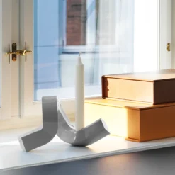 The design and materials are chosen to create a poetic interplay between the hard and the soft. The shapes are twisted, organic, and challenging, while the material carries a certain weight. The candlestick’s winding silhouette draws inspiration from twisted staircase designs found in modern and progressive architecture, particularly brutalism.