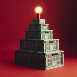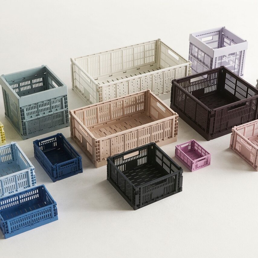 HAY’s Colour Crate is a series of handy, adaptable storage boxes with a perforated design. Made from 100% recycled post-consumer plastic, these stackable crates come in cubes, squares, and rectangles in a wide variety of colours and sizes. They can be supplemented with lids and wheels, and placed inside each other in multiple configurations, making them ideal for storage, display, and even innovative furniture items. Their multifunctionality, combined with their ability to be folded flat when not in use, makes them a versatile and space-saving storage solution.