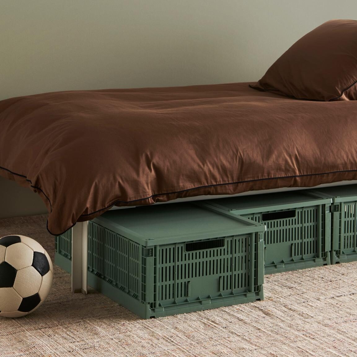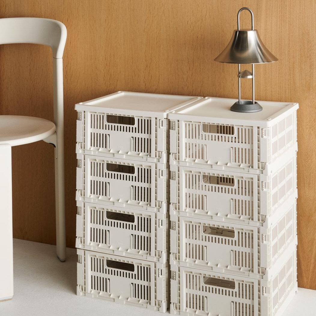 A useful lid that fits on top of HAY’s Colour Crates, allowing for their contents to be neatly concealed, singularly or on top of a stack. Made from 100% recycled post-consumer plastic in colours that match the crates, the lids can be used to optimise storage in the bathroom, kitchen, and most other rooms in the home.
