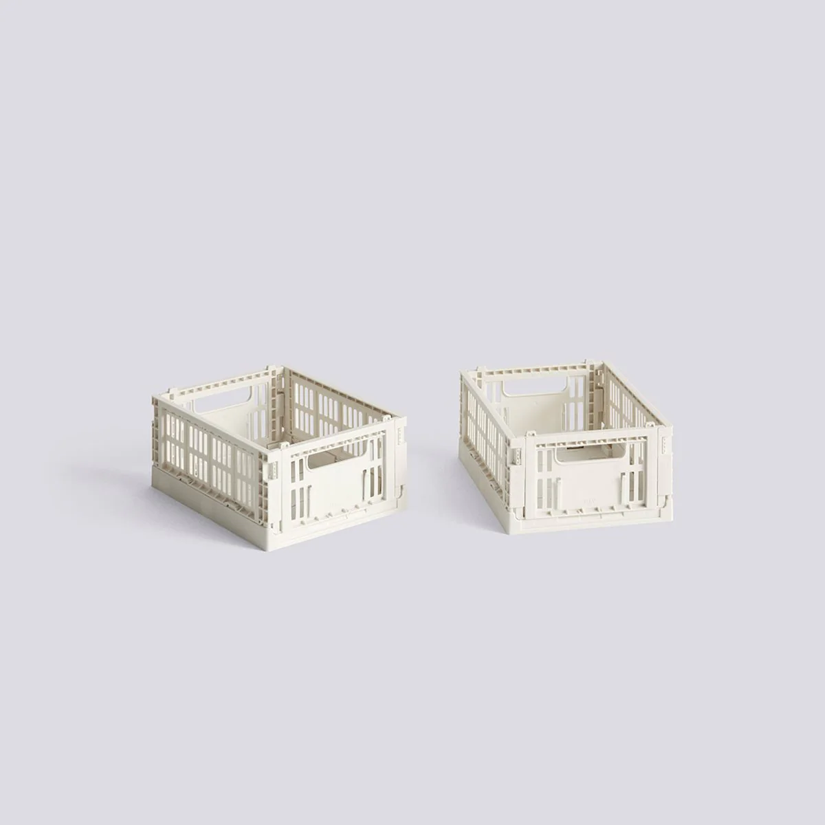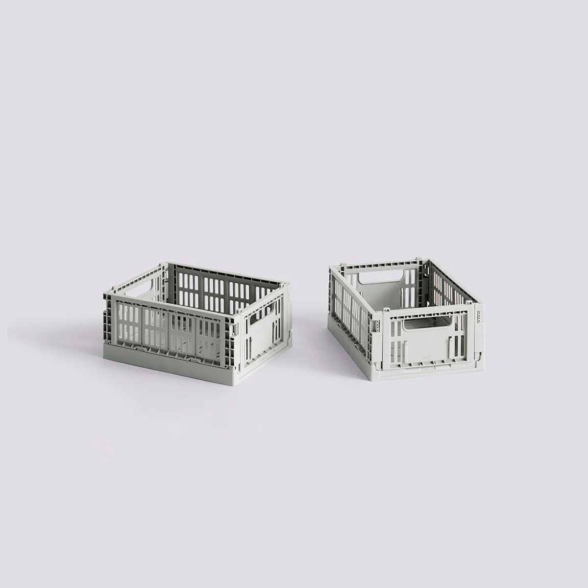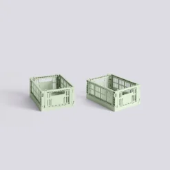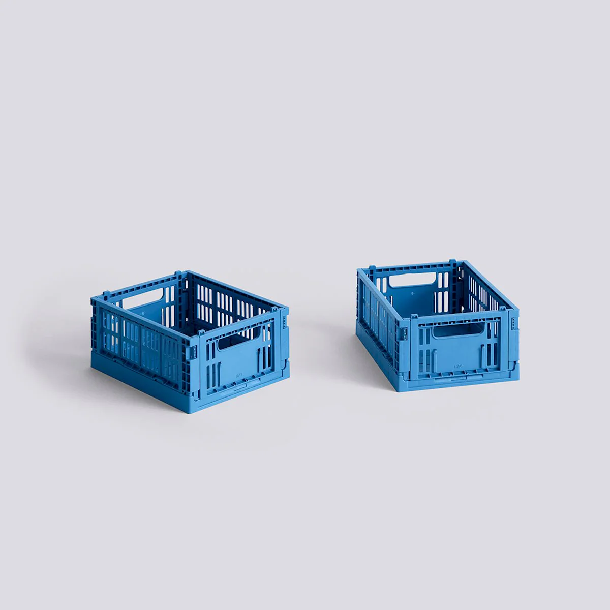 HAY Colour Crate is a series of colourful storage boxes with a distinctive, perforated design. Made from 100% recycled post-consumer plastic waste in a variety of different colours and sizes, the crates can be stacked on top of one another in different size combinations. The multifunctional crates are suitable for storing and organising a wide range of items on shelves, tables or inside cupboards.