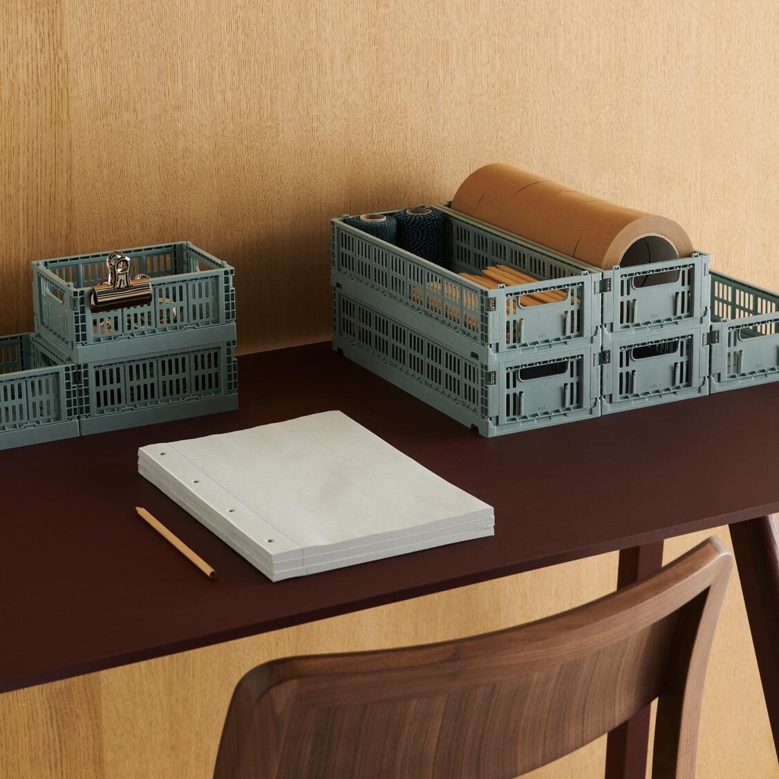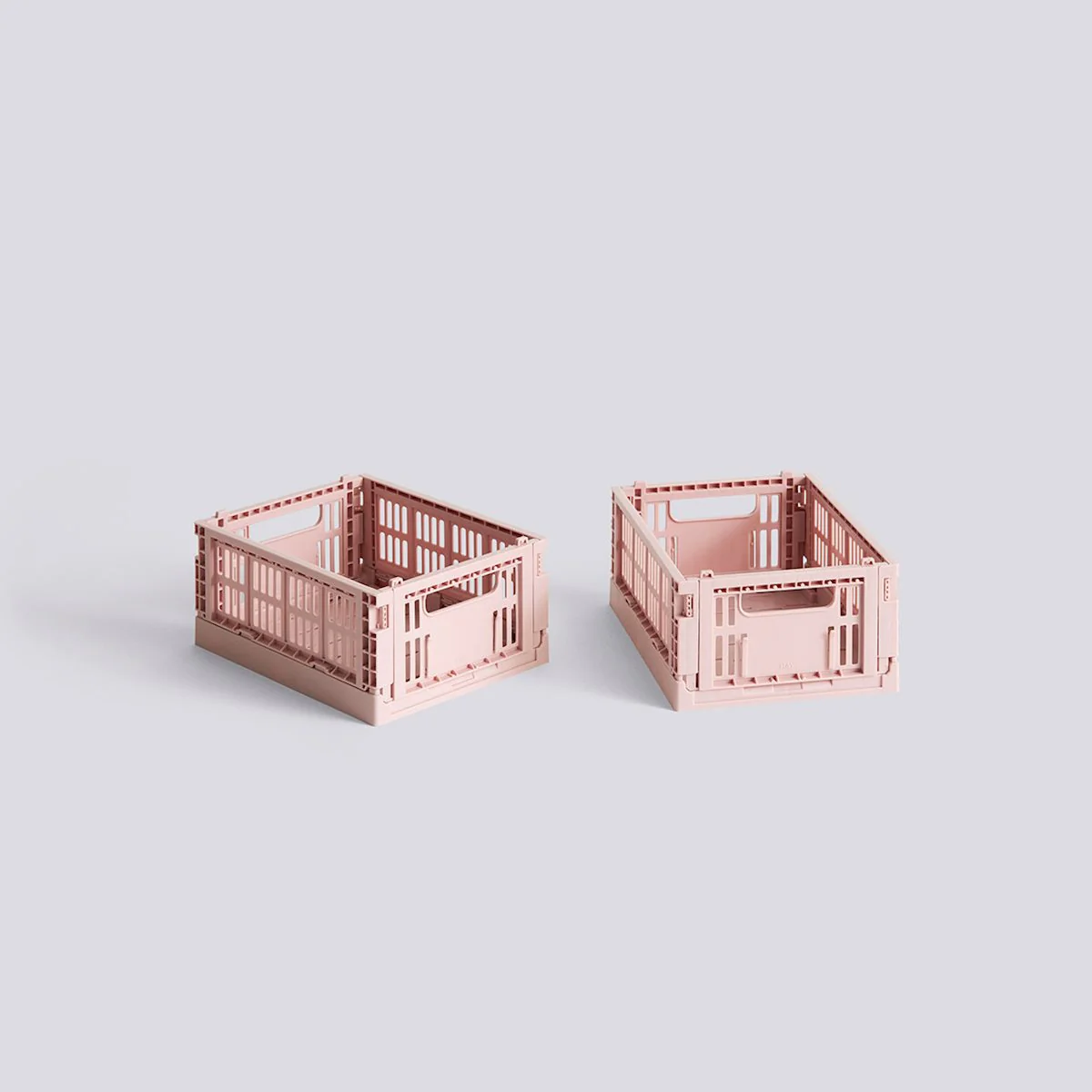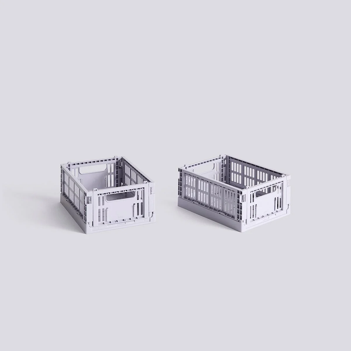 HAY Colour Crate is a series of colourful storage boxes with a distinctive, perforated design. Made from 100% recycled post-consumer plastic waste in a variety of different colours and sizes, the crates can be stacked on top of one another in different size combinations. The multifunctional crates are suitable for storing and organising a wide range of items on shelves, tables or inside cupboards.
