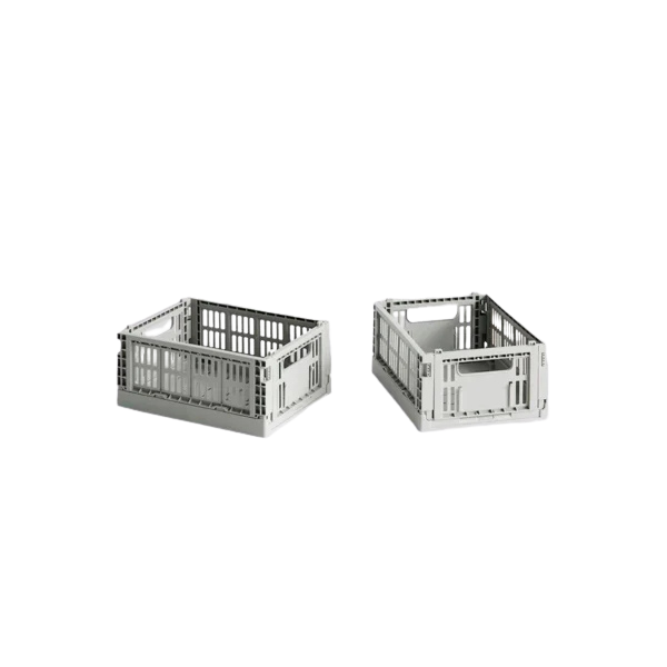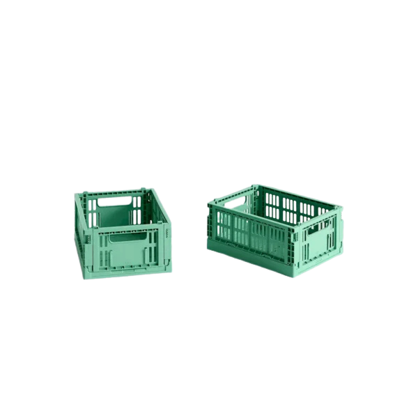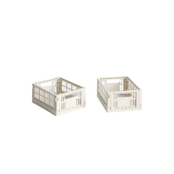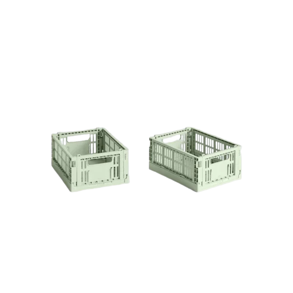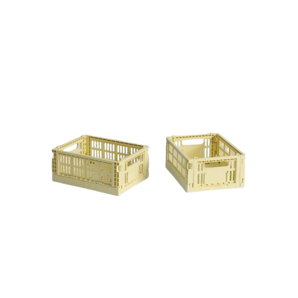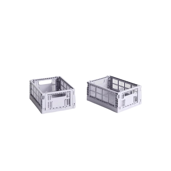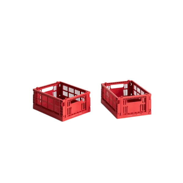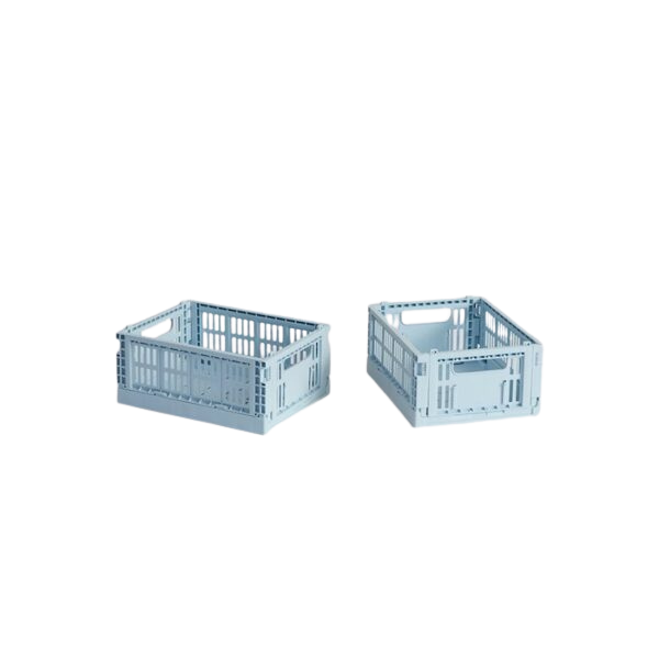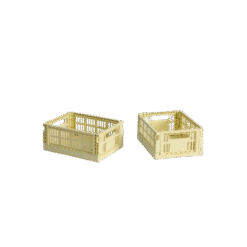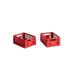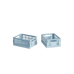 HAY Colour Crate is a series of colourful storage boxes with a distinctive, perforated design. Made from 100% recycled post-consumer plastic waste in a variety of different colours and sizes, the crates can be stacked on top of one another in different size combinations. The multifunctional crates are suitable for storing and organising a wide range of items on shelves, tables or inside cupboards.