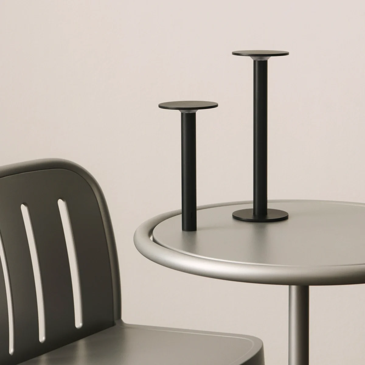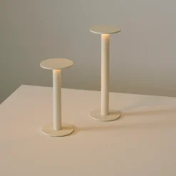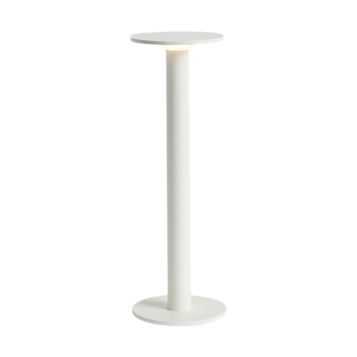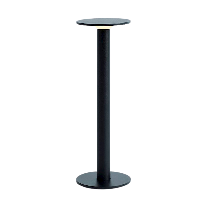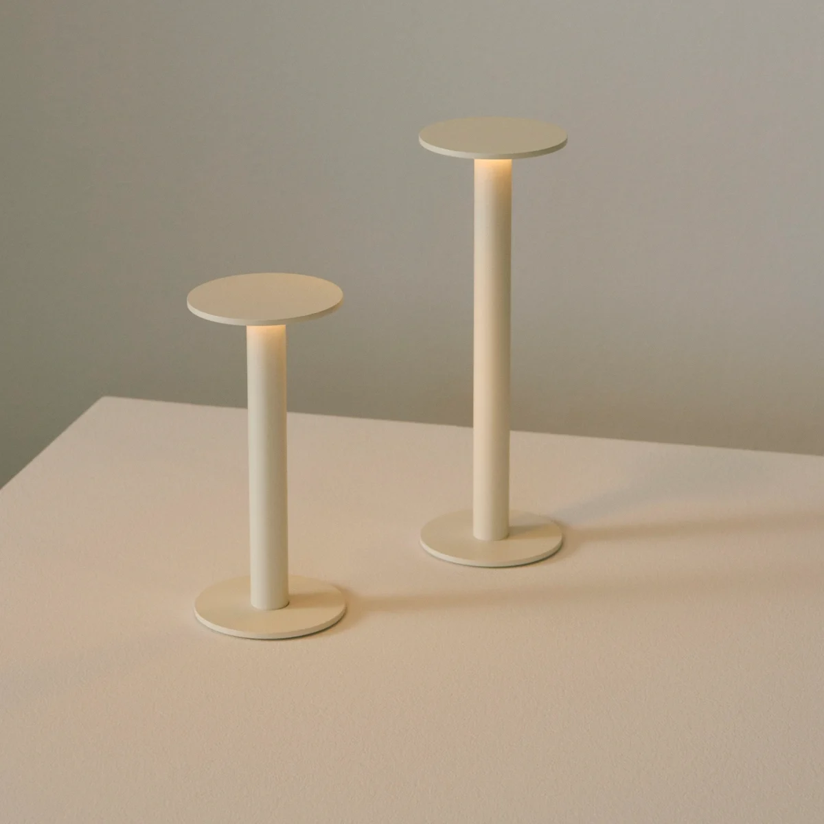 A compact, portable lamp designed to provide light without drawing focus to itself. Its slim profile takes up little space, while the downward cast of light gently illuminates the surface beneath it. An integrated magnet in the base allows attachment to metal surfaces, and a flat steel base is included for use on non-magnetic surfaces. Lightweight and rechargeable via USB-C, it offers cordless flexibility and effortless mobility. Available in various heights and colour options, it works equally well on its own or arranged in groups, making it suited to everything from intimate settings to shared spaces.