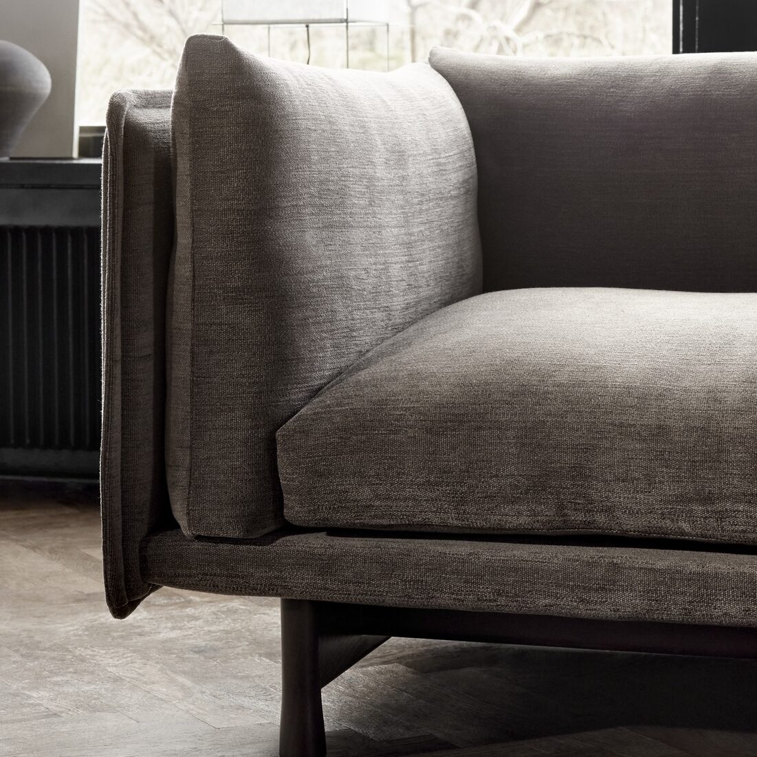 Designed by Jonas Wagell, opposites attract in the modular Kite Sofa in which a sturdy and encasing exterior of upholstered panels, mimicking the planes of a kite, courts a soft, inviting inner. The result is a sofa that speaks with confidence, rather than loudly.