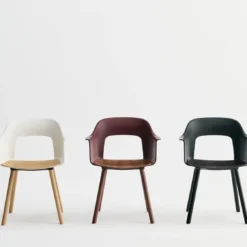 Designed by Julien Renault, Layout Armchair 222 offers a flexible and innovative design shaped by a commitment to comfort, functionality, and circularity. Characterised by the opening in the backrest, this defining feature provides greater comfort while giving its appearance a sense of lightness and transparency. A plywood seat brings natural warmth, while rounded wooden legs provide stability and a timeless appeal, with all components designed for disassembly to extend the lifespan and enable refurbishment for long-term use. The shell is crafted from a minimum of 96% post-consumer recycled plastic and offered in a wide range of colours, with the seat offered in the same wood type and finish options as the base, making Layout a versatile and durable seating solution ideal for offices, restaurants, public institutions, and domestic settings.