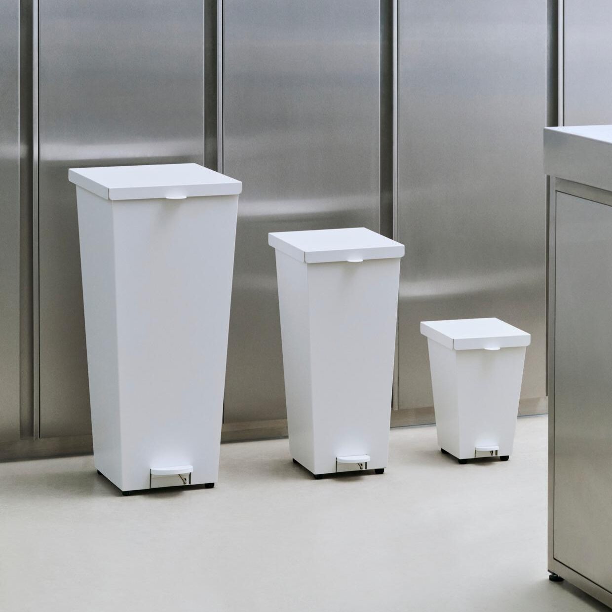 Designed for HAY by Leif Jørgensen, Loop Bin is a rectangular pedal bin that offers efficient waste management in a simple, aesthetic design. The soft-close lid and foot pedal provide easy and convenient opening, while the inside bag ring neatly conceals the bag and keeps it firmly in place. Made in stainless steel with bag ring in recycled ABS, Loop’s different size and colour options make it a versatile choice suitable for most uses and rooms.