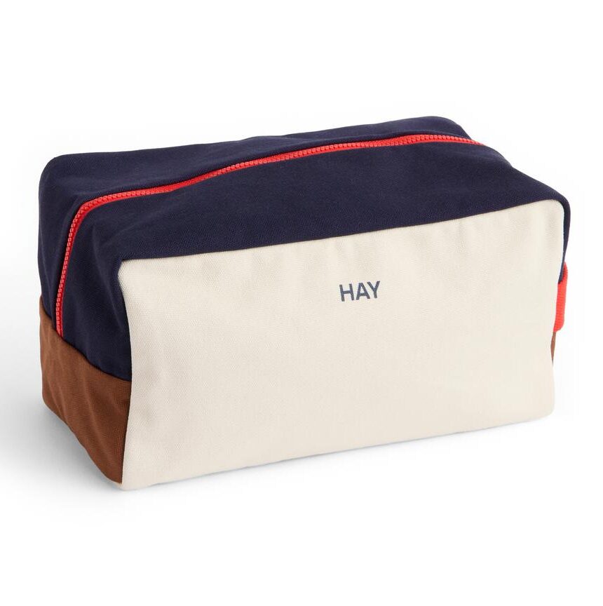 HAY’s Multi Wash Bag is a colourful and practical wash bag for storing cosmetics and bathroom essentials. Featuring a zip fastening, interior pocket, and handy strap for hanging, it provides a roomy storage solution with a playful design. Made in strong and durable organic cotton, the Multi Wash Bag is available in different colour options.