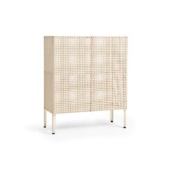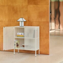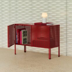 Muller Van Severen is introducing the Perforated Cabinet – a take on storage that rethinks utility through the lens of structure, transparency, and form. Made from powder- coated steel and characterised by a grid of perforated holes, the design strikes a balance between concealment and display. The semi- transparent surface subtly veils its contents while keeping them visually accessible – a functional hybrid between open shelving and a closed cabinet. Available in wall-mounted and floor-standing variants, and offered in a variety of colours and sizes, the Perforated Cabinet brings colour and character to the art of keeping things in order. Available worldwide from August.