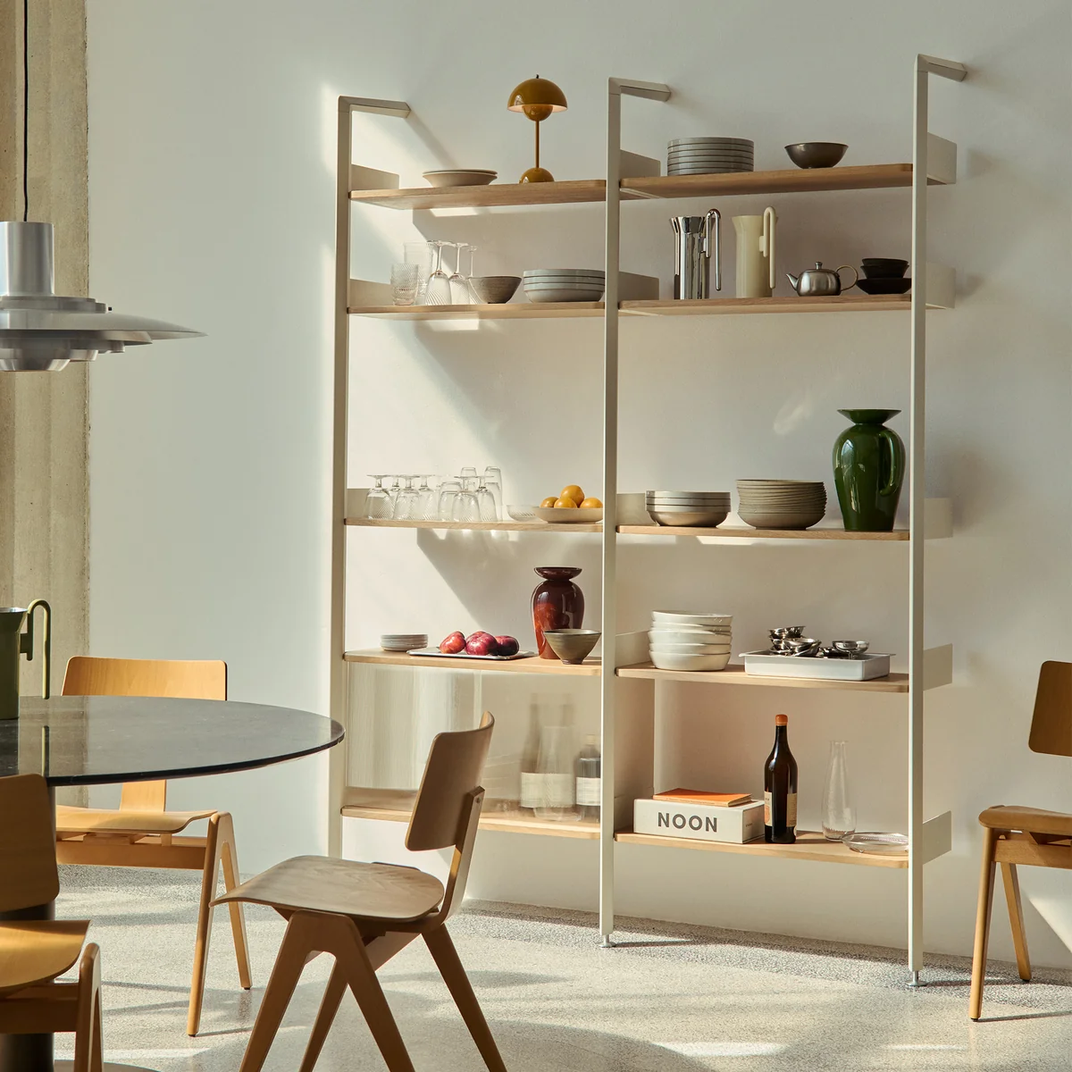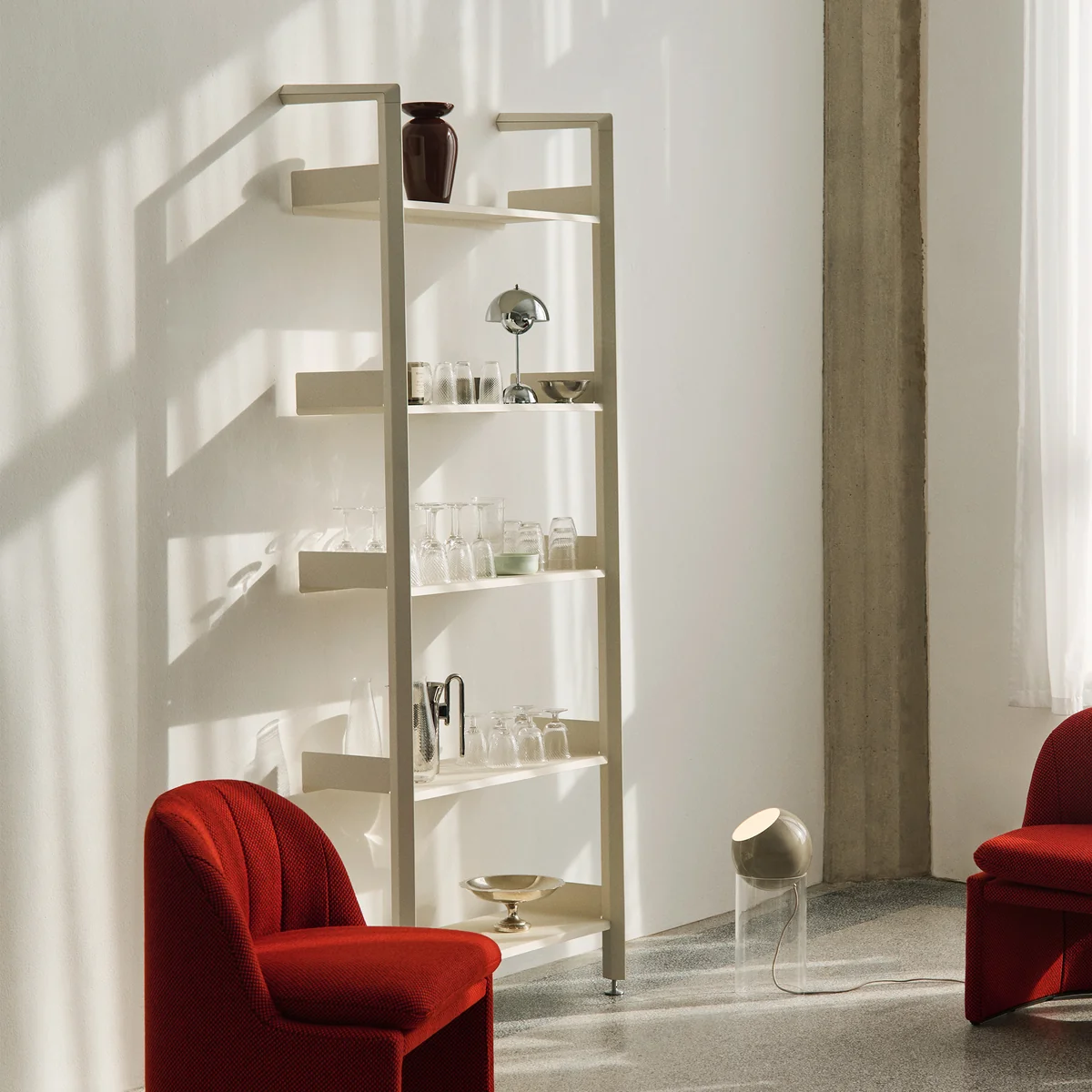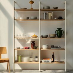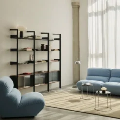 A modular shelving system with sculptural utility at its core, Rombe has been designed to adapt to the multifaceted needs of modern living. Adding another layer of tactility to the Rombe system, the IF3 bay includes a cabinet with reeded glass doors to elegantly conceal objects.