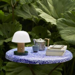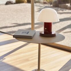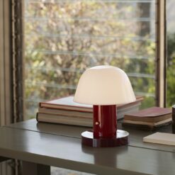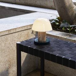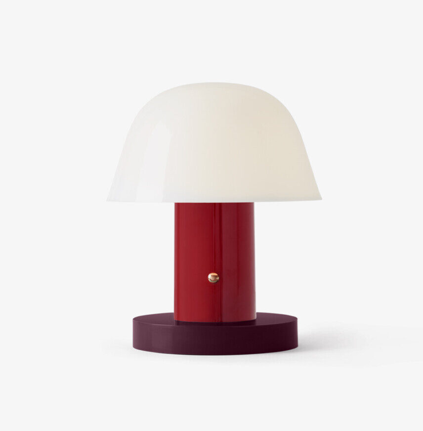 ‘Seta’ the Spanish word for mushroom sets the tone for the diminutive, mushroom-like proportions of this quirky table lamp. But a further clue to its identity is signified by the suffix ‘go’ because this portable lamp unburdened by an electrical cord can literally move anywhere. Additional design features include a discreet gold dimmer and a stylish upward curve on the lamp shade’s brim.