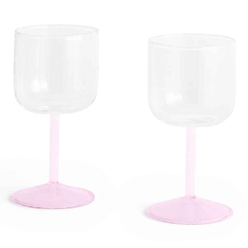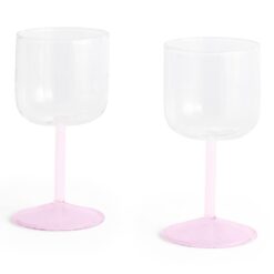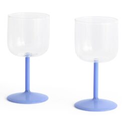 Tint Wine Glass is a collection of wine glasses made in tinted and clear borosilicate glass. The elegant, simple design is suitable for serving wine, as well as water, juice and other soft drinks. The glasses come in sets of two, available in different colours.